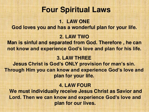 I have come to disagree with much of what was printed in that Four Spiritual Laws tract which included the following along with the pictures above: