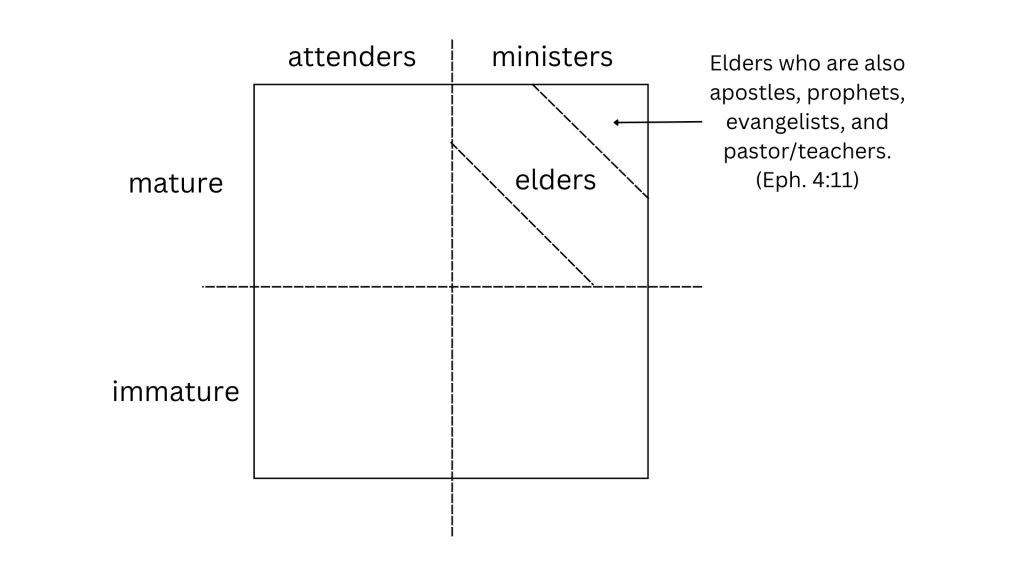 In a church the babes in Christ are to a small degree dependent on the elders and so there is a hierarchy of sorts, hence the admonition: “We beseech you brethren, to know them which labour among you, and are standing before you (lit.) in the Lord and admonish you, and to esteem them very highly in love for their work’s sake.” (1 Th. 5:12-13) This dependency, however, does not give the elder license to create for himself a higher level in a pyramid government structure.